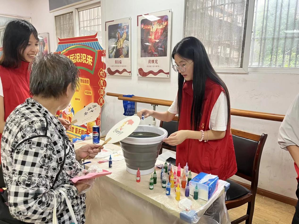 互动体验区成为活动的“人气打卡地”。“玉兔套圈”游戏充满童趣,志愿者们耐心引导居民参与;民俗体验区的绿豆糕制作与非遗漆扇创作更是热闹非凡。绿豆糕制作环节,志愿者提前备好材料,细致讲解制作步骤,手把手教居民们按压成型,大家纷纷表示“自己做的绿豆糕更香甜,还想多来几个”;非遗漆扇创作现场,居民们挑选心仪的色彩与图案,在志愿者的协助下勾勒线条、填充色彩,一把把兼具传统韵味与个人创意的漆扇逐渐成型。大家在亲手实践中感受传统文化的独特魅力,体验动手创作的成就感与乐趣,让中秋节日氛围愈发浓厚。