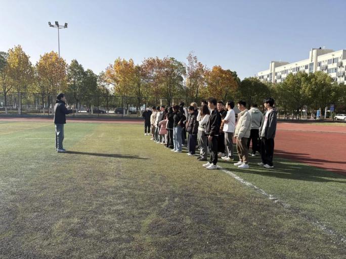 活动伊始,实用科普环节率先登场,为冬跑之行筑牢科学根基。体育助教王琪以“冬季健康跑服装选择指南”为主题,带来专业细致的讲解分享,助力学子们精准做好冬跑防护。针对冬季低温环境下运动易受凉、易受伤的痛点,他以“三层穿衣法”为核心,细致拆解科学着装的关键要义:排汗层甄选速干面料,高效吸湿不粘肤;保暖层适配气温调整厚度,锁温御寒护元气;防护层兼顾防风防水性能,隔绝寒风守暖意。同时聚焦耳罩、手套、保暖袜等外露部位防护,结合运动生理学知识,耐心解答“跑步后为何易感冒”“如何防范脚踝受凉”“出汗后衣物如何科学更换”等常见疑问,讲解深入浅出、干货满满,让学子们轻松掌握科学冬跑技巧,为后续运动筑牢健康防线。