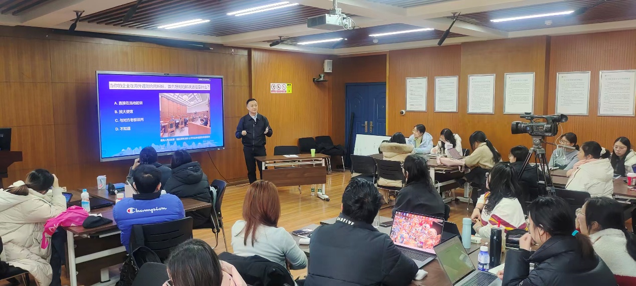 为促进中国涉外商事调解发展,培养优秀涉外法治人才,2025年12月25日下午,商事调解实务课程第十四讲在江汉大学法学院顺利进行。现任广西商事调解协会党支部书记和会长、中国-东盟自由贸易区南宁国际商事法庭特邀调解专家吴晓帆,以实务案例为载体,结合理论解析,生动讲解跨境纠纷解决逻辑,与同学们共同讨论了涉外法律纠纷调解与仲裁的相关内容,从“一带一路”视角中带领学生走进中国多元化纠纷解决机制,并为年轻人探寻职业发展提供了专业的行业洞察与建议路径。