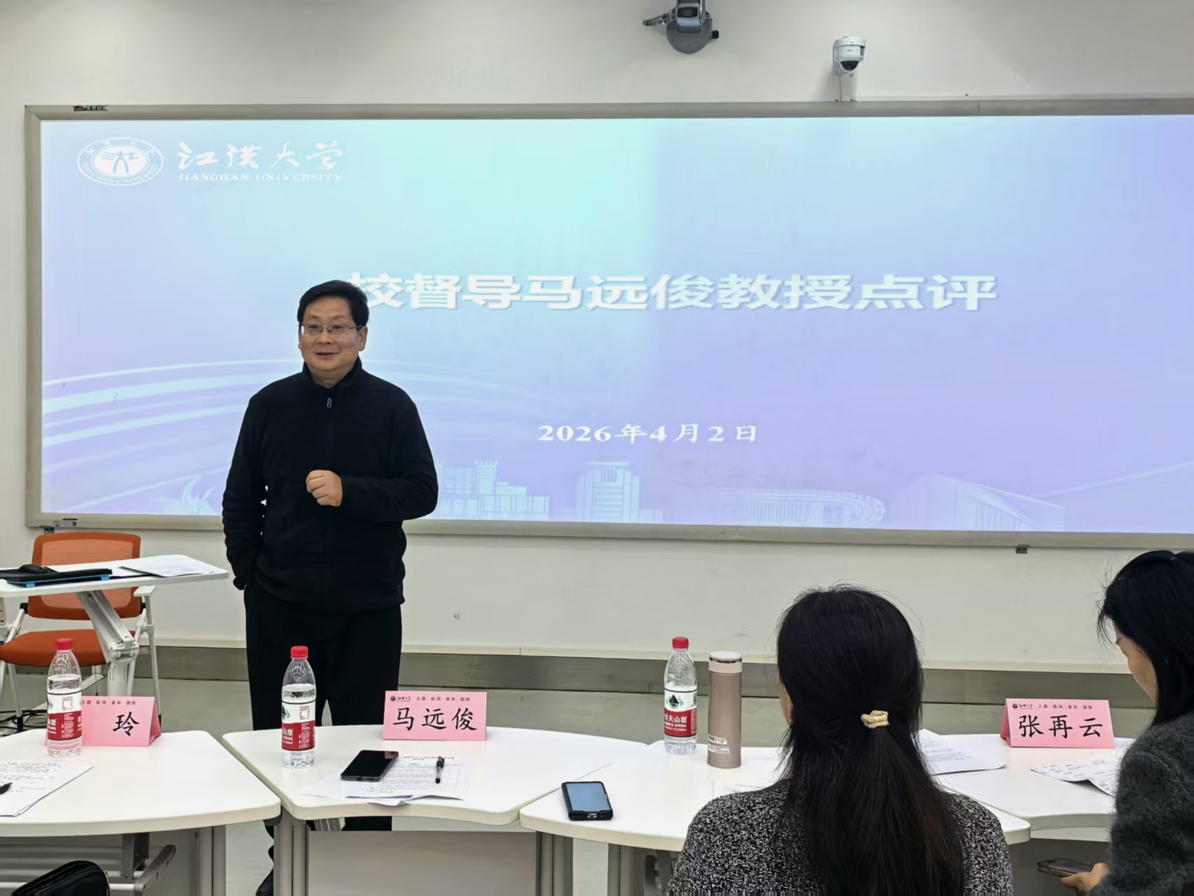 评审环节中,评委组严格对照评分标准,从教学设计科学性、教学内容准确性、课堂组织有效性、语言表达感染力、教学创新度以及课程思政融入等方面进行综合评分并开展点评。专家们既充分肯定了各位教师的教学亮点与专业优势,也针对性地提出了改进建议,为青年教师提升课堂教学质量提供了专业指导。马远俊在总结点评中高度评价了本次竞赛的组织成效与参赛教师的教学风采。他指出,青年教师要持续深耕课堂、打磨教学技艺,进一步强化课程思政的有机融入,深化教学方法创新,不断提升课堂教学的针对性与实效性,为本科人才培养提质增效筑牢基础。